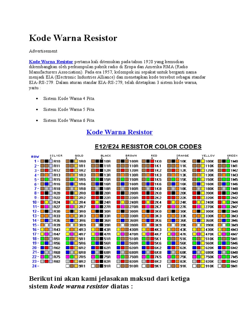 Mengenal Kode Warna Dan Ukuran Resitor Karbon Blogkamarku Com
