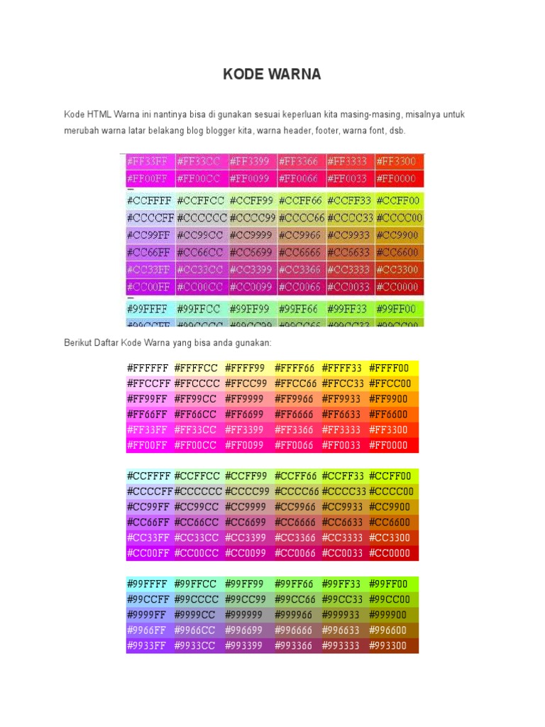 Kode Warna Html Docx Kode Warna Html Contoh Putih