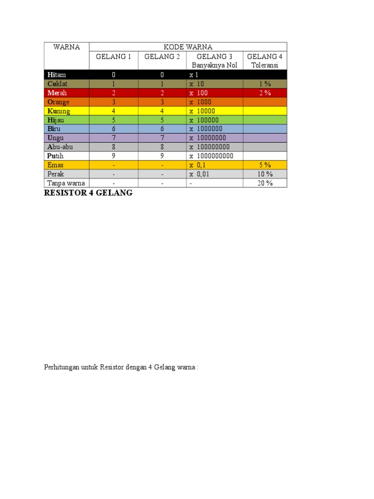 Tabel Kode Warna Resistor Doc Document