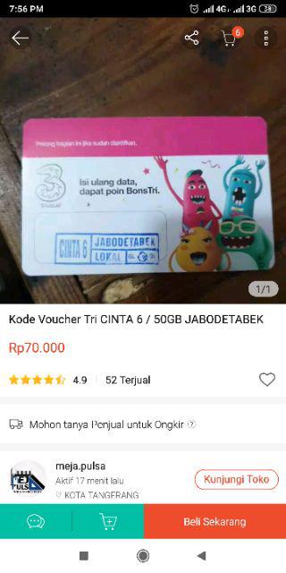 Jual Voucher Tri Cinta 6 50gb Bonus Lokal Kuota Internet Data C6 Kab Bogor Ichabe Store Os Tokopedia