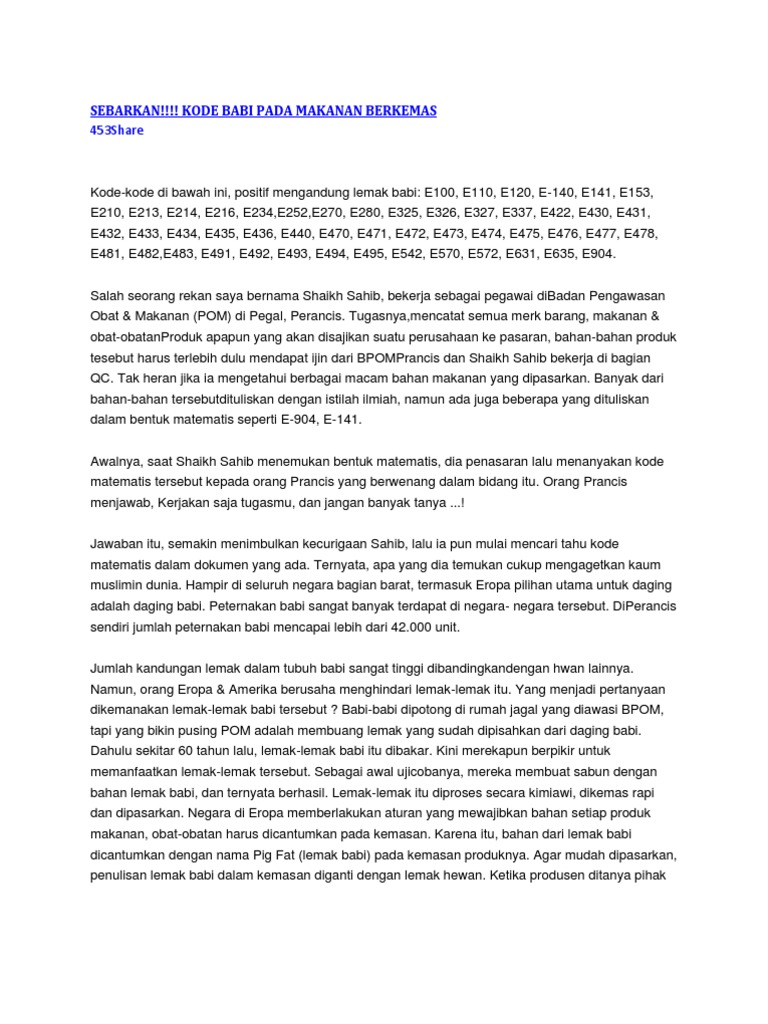 Kode Makanan Mengandung Lemak Babi Islam Pengetahuan Dan